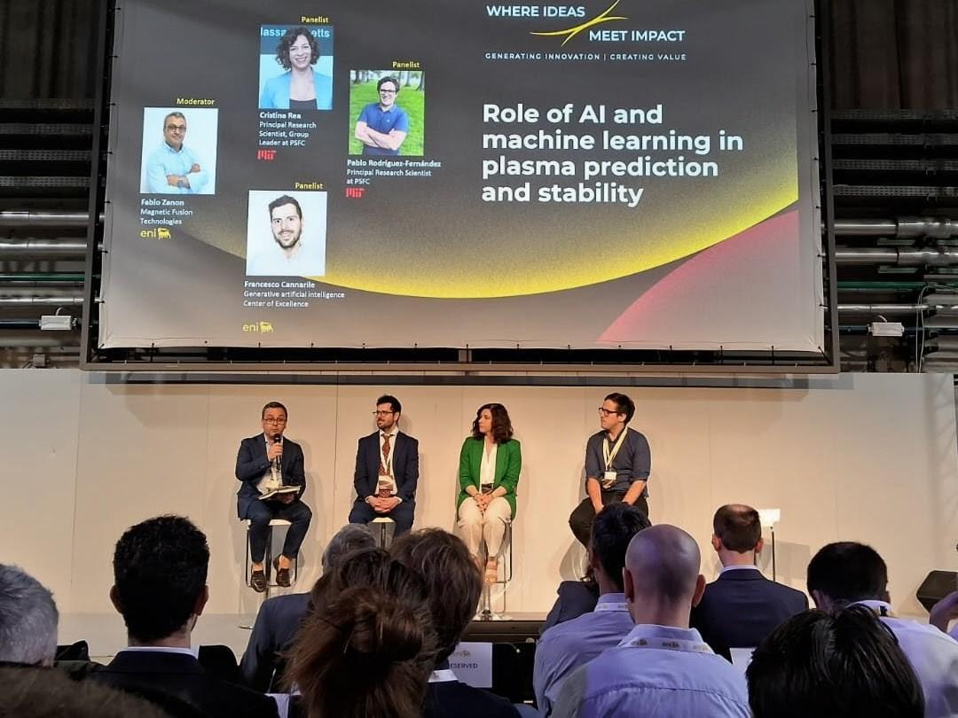 On the day devoted to Fusion, the keynote speech was delivered by Bob Mumgaard, CEO of Commonwealth Fusion Systems, showing the fast-paced progress of the SPARC project and ARC plant design. Following that, Professor and PSFC director Nuno Loureiro, together with principal research scientists Cristina Rea, Pablo Rodriguez-Fernandez, and Kevin Woller shared attention in the different panel discussions. In particular, group leader Cristina Rea joined a panel focused on the use of AI in fusion, highlighting the importance of explainable and interpretable solutions reconnecting to a clear understanding of the underlying physics. Robust and verifiable AI solutions can only be enabled by leveraging open source technologies and public data.